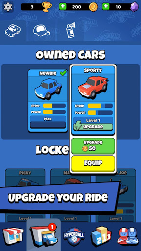 Defeat your opponents to unlock new cars ,upgrades and cosmetics for your cars.