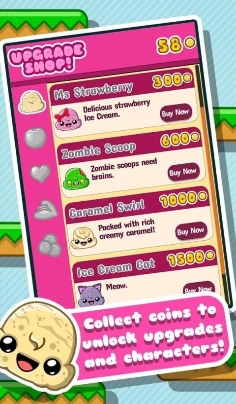 There are more ice cream characters now, you can collect them all by picking up the coins in the game, or you can use your coins to upgrade power ups!