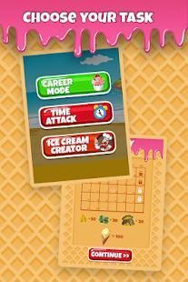 Career Mode - Take control of your ice cream shop and start serving the best ice cream combinations as per the pattern in the record time to achieve the targets. The game takes cooking and making fun to a whole new level by indulging you in a career mode to make and serve ice creams as per patterns in record time.