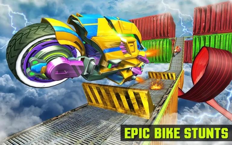 Are you ready for an impossible bike racing game with crazy motorcycle bike stunt challenge and transform robot. This is one of the best bike riding games where you are in the sky high impossible grand paths and perform crazy motorcycle stunts as a fast bike with robot transformation skills. Master the extreme stunt bike rider skills with a craft to showcase impossible biker stunts and become the hero transform robot bike rider in the futuristic steel robot bike racing adventure.