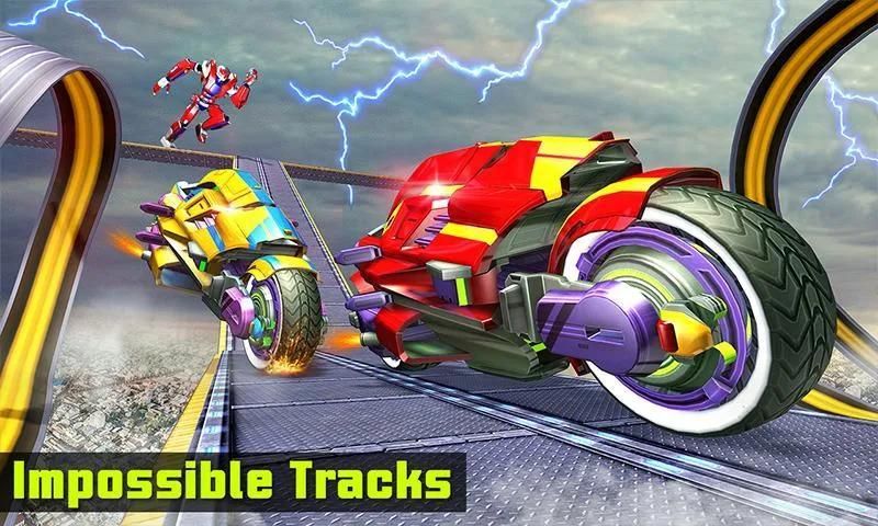 Download now for FREE Impossible Bike Racing Tracks Transform Robot Game Simulator. It is one of its kind that offer experience of impossible tracks driving with amazing stunt bike racing game.