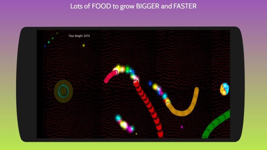 आपका लक्ष्य दुनिया में सबसे बड़ा और सबसे लंबा सांप बनना है, यदि आप अपने सिर से दूसरे को छूते हैं तो यह गेम है। उसी तरह अगर दूसरे आपको छूते हैं तो वे फट जाएंगे और आप उनके अवशेषों को खा सकते हैं।
