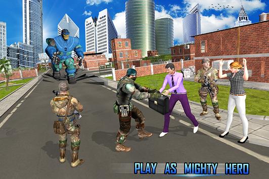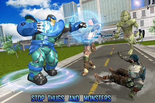 खेल की शुरूआत में कुछ गिरोहियों ने नागरिकों से मजबूती से बैग छीन लिया। एक सुपर राक्षस नायक के रूप में आपको इन बुराई शक्तियों के साथ आने और लड़ने की आवश्यकता होगी। इसके बाद आपको बिंदु पर जाना होगा और पुलिस स्टेशन ढूंढना होगा ताकि पुलिस इन्फिनिटी नायक की मदद से इन गैंगस्टर को पकड़ सके। इसके बाद आपको तेजी से भारी वजन जीप का उपयोग करके समय पर लक्ष्य बिंदु पर जाना होगा। अगले स्तर में गिरोहियों और राक्षसों ने शहर को नष्ट करने और नागरिकों को मारने की कोशिश कर रहे हैं। आपको उन्हें अपने लड़ने के कौशल से लड़ने और उन्हें मारने की ज़रूरत होगी अन्यथा वे आपको मार देंगे। अगर गैंगस्टर आपको मार देते हैं तो आप अपने स्तर को विफल कर देते हैं। तो सावधान रहें और अपने सभी दुश्मनों को मार डालो