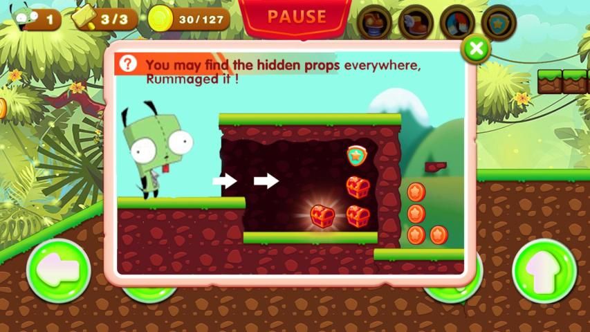 • विशेष हमलावर गिर Zim साहसिक destroyable ब्लॉक और ईंटों में छिपा आश्चर्य