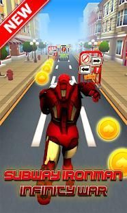 Iron Hero Man Infinity War is an amazing running game for Android. Run along the craziest scenarios in the City. Drag to jump or slide and to move left or right. Avoid hitting trucks, buses and subway trains. Run around the city, subway, forest and beach and gather all the coins you can.