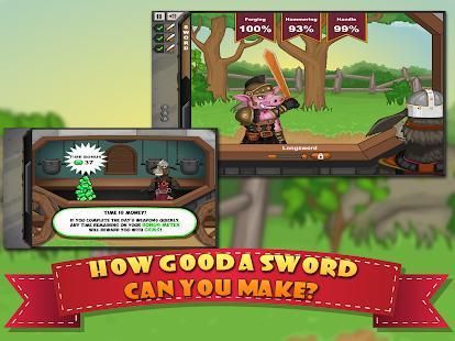 , you are a blacksmith crafting a wide range of weapons for all of your warriors. Crafting weapons is completely hands-on. Choose your ore, choose your mold, melt it, pour it, construct it, and design it. Whether it's swords, bows, arrows, axes, or others things, you'll need skills and strategy to make the perfect weapon. After crafting, it's off to battle with your team of warriors. As they fight, you gather loot and man the cannons, and keep making progress towards the Great Wizard Dudley!