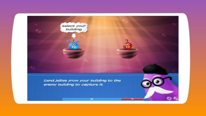 Once peaceful, now war engulfs the Jelly kingdom. As the noble blue jellies, capture strong points and reproduce an army to take on the aggressive red jelly army
