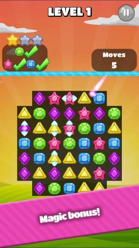मैच 3 आप एक ही रंग गहना के तीन या अधिक आइटम अप लाइन के लिए है जो एक खेल है. इन मैचों का निर्माण रत्नों को कुचल देंगे.