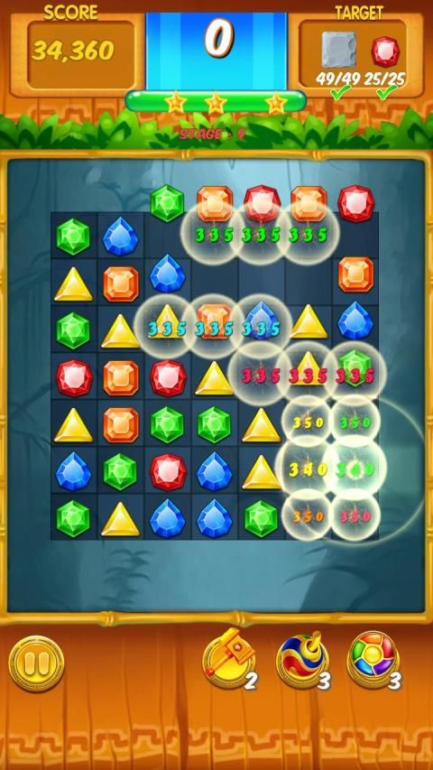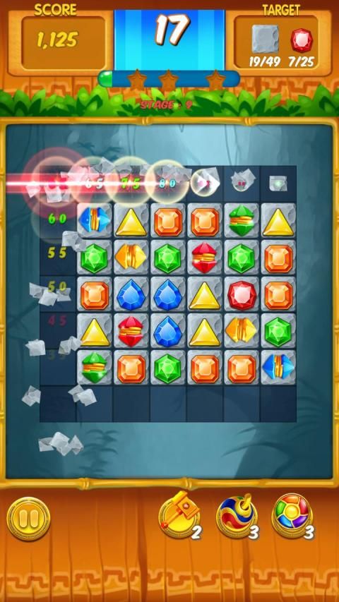 - Combine 2 special jewels to make huge chain reaction to help you pass the level.