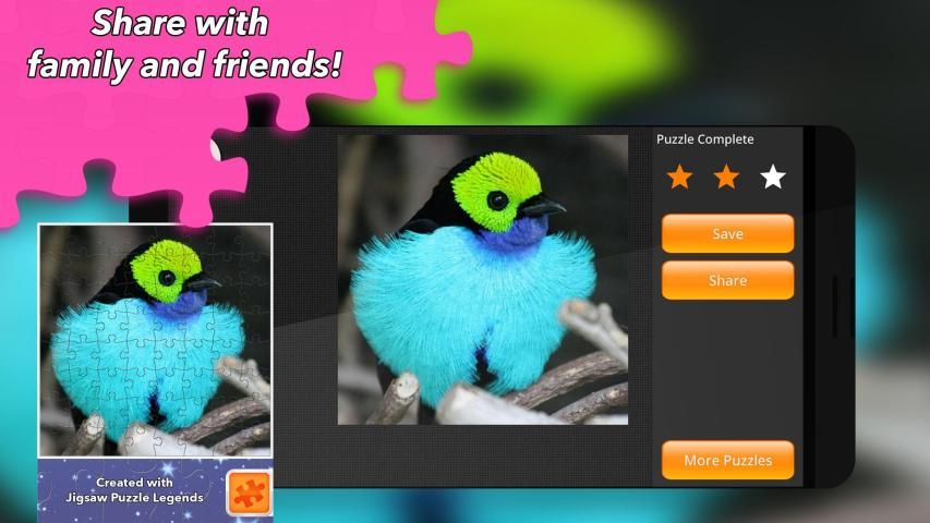 • Save completed jigsaw puzzles on your device or share them with your friends and family.