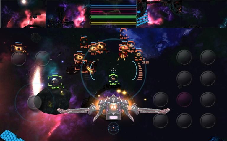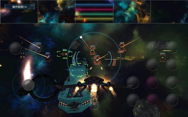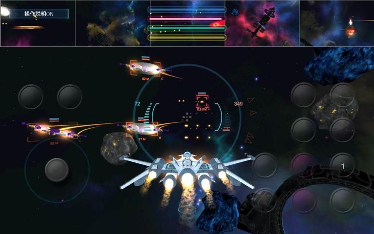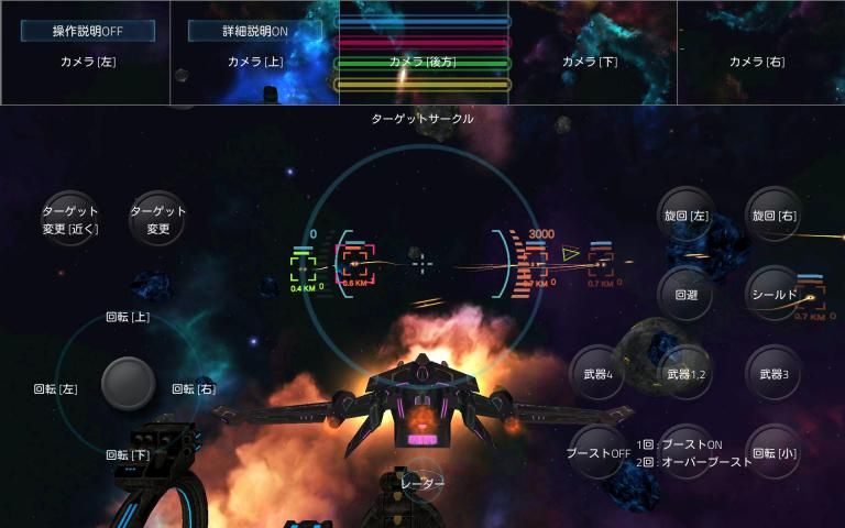 ・武器1~4、ブースト、シールド、回避、回転、旋回など様々な操作を駆使して、敵軍の機体や戦艦との戦闘を行います。