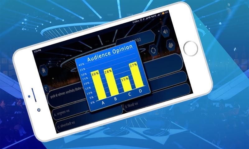 4) श्रोता मतदान: दर्शकों द्वारा दिए गए उत्तरों का ग्राफ आपकी स्क्रीन पर दिखाई देगा। कभी-कभी जवाब गलत हो सकता है। लेकिन ज्यादातर दर्शक चुनाव सही है।
