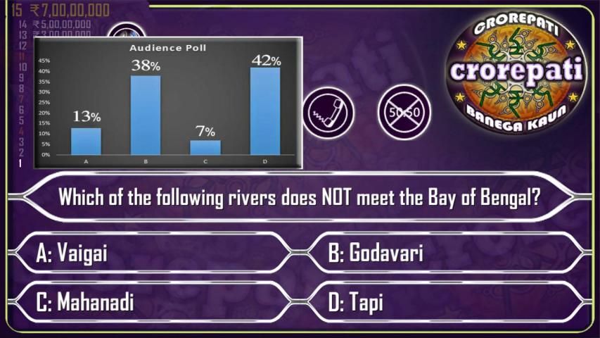 This game will help you improve your GK. The theme of the game remains same as the actual TV show, KBC kaun banega crorepati.