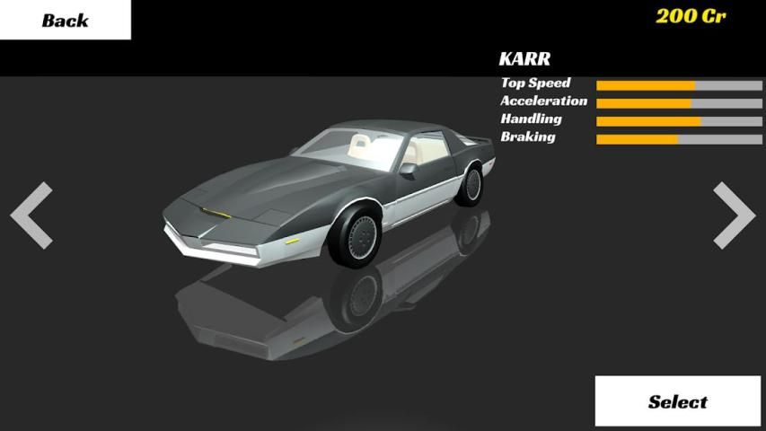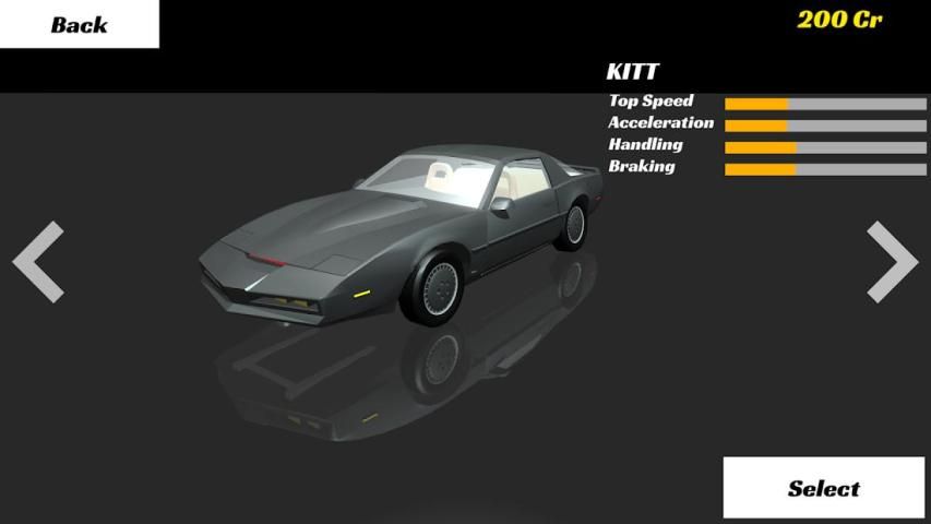 अपने समय KITT के साथ रेस के लिए! सभी के.आर. कारें यहाँ हैं! दौड़ जीतने के लिए और एक कार ले लो करने के लिए पैसे कमाने!