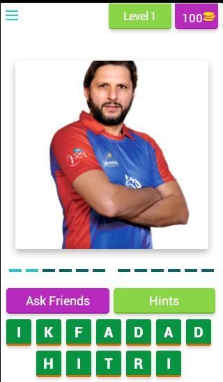 * आप उपलब्ध स्थान जो पीएसएल क्रिकेट खिलाड़ी का नाम है पर सही पत्र लगाने से प्रत्येक स्तर पारित करने के लिए सवाल का जवाब देने की है।
