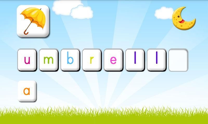 * Quiz - This activity contains draggable letters which needs to be arranged to construct full words. There are images and sounds associated with each word and letter. It improves vocabulary of child. Use nice graphics and sounds for result.