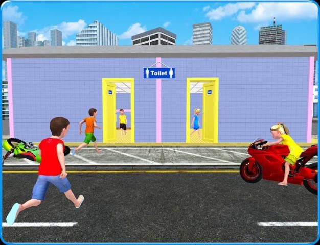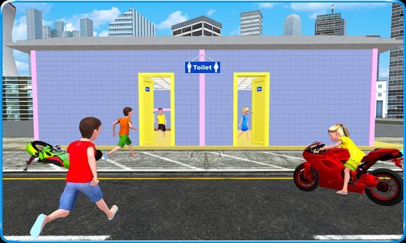 मोटरसाइकिल कुछ पागल बच्चे के नियंत्रण में है। तो बच्चों को निश्चित समय में साथ शौचालय तक पहुँचने के लिए है।