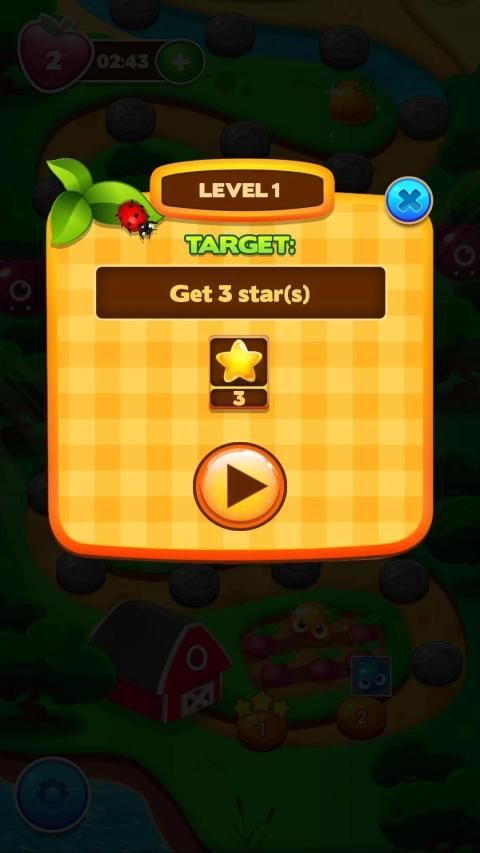 प्रत्येक स्तर को पूरा करने के लिए फल, स्वैप रत्न और कैंडी से 3 फलों का मिलान करें।