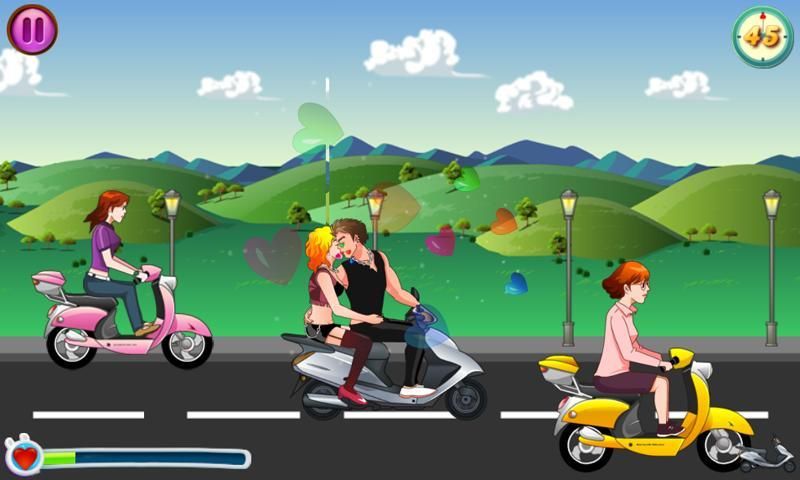 चुंबन रेसर एक कौशल खेल है। आप अपनी प्रेमिका के साथ सड़क पर एक मोटरसाइकिल की सवारी कर रहे हैं! अपनी प्रेमिका को आप चुंबन करना चाहते हैं लेकिन अन्य लोगों द्वारा देखा जा नहीं करना चाहती। आप चुंबन जबकि किसी को भी साफ झलकती है, तो आप एक जीवन खो देंगे। हर स्तर में दिया अवधि के भीतर चुंबन लोडर भरें।