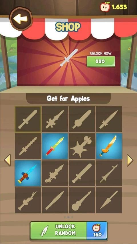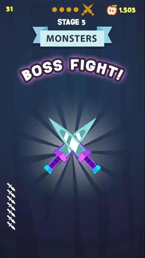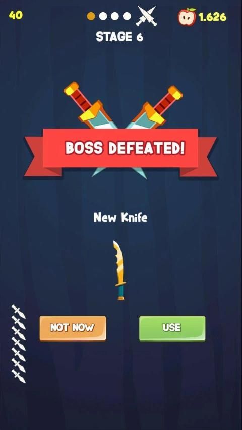 Throw the knives into the fruit to break them. Slash the apples and unlock new knives. Each 5th stage is defended by a boss - beat them to get exclusive knives!