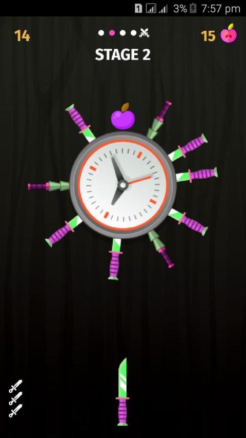 Knife Target Master allows you to anticipate your target before throwing each knife. You have a stated amount of knives allocated to you at each stage. The best way to use those knives is to make sure they are hitting the object in front of you and not existing knives on the object.