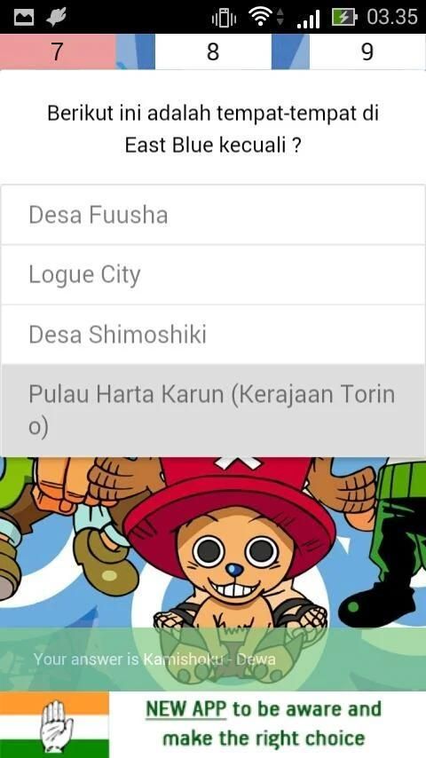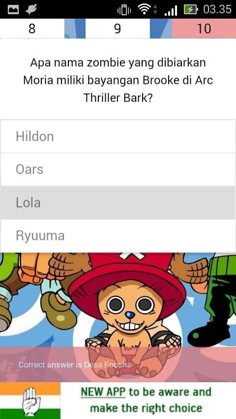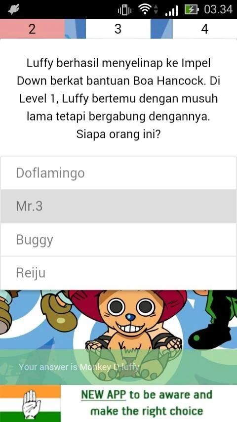 Mengulang dan mengingat cerita lama dalam anime one piece dan jawab pertanyaan dengan benar untuk melanjutkan ke pertanyaan berikutnya!