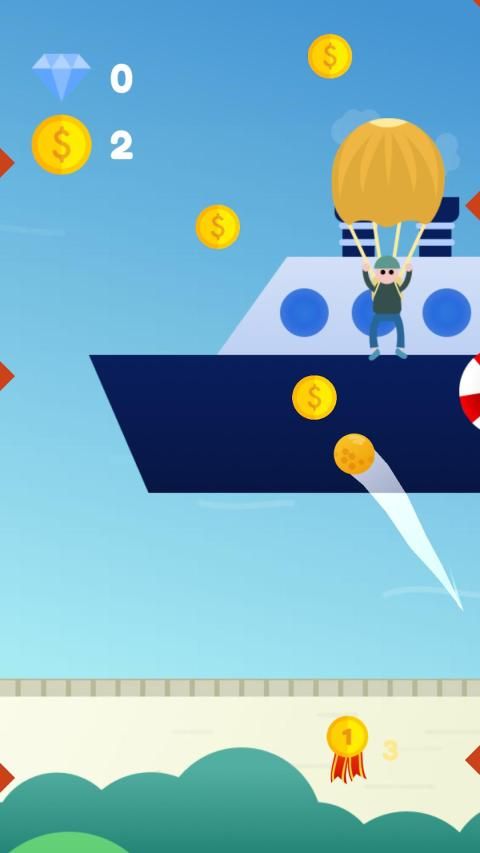 - मज़ा भौतिकी आधारित गेमप्ले (सिक्के प्राप्त करने के लिए पक्षों के साथ एक नायक कूदो)