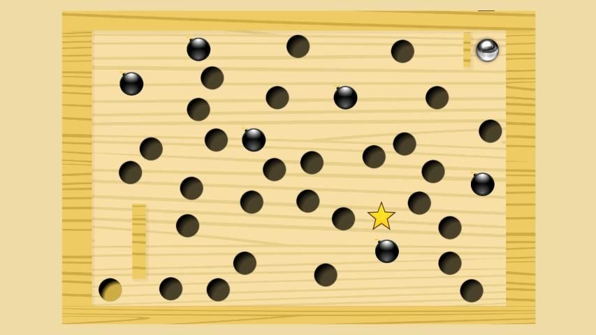 You control the ball by tilting the maze. The objective is to tilt your mobile or tablet in a way the ball rolls to the target without falling into a hole or being stopped by other obstacles like bombs.