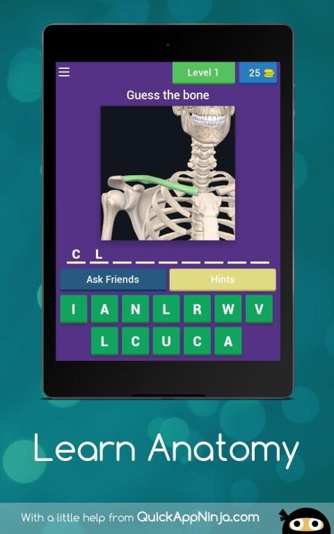 यह मानव शरीर की सभी हड्डियों, धमनियों और अंगों को सीखने में मदद करने के लिए एक ऐप है।