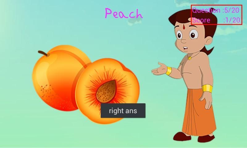 Following is the introduction of a wonderful App. 20,000+ users downloaded Learn Fruits with Bheem latest version on 9Apps for free every week! You'll found many people are using it. This hot app was released on 2017-12-15. It is one of the popular Android apps in 2015.