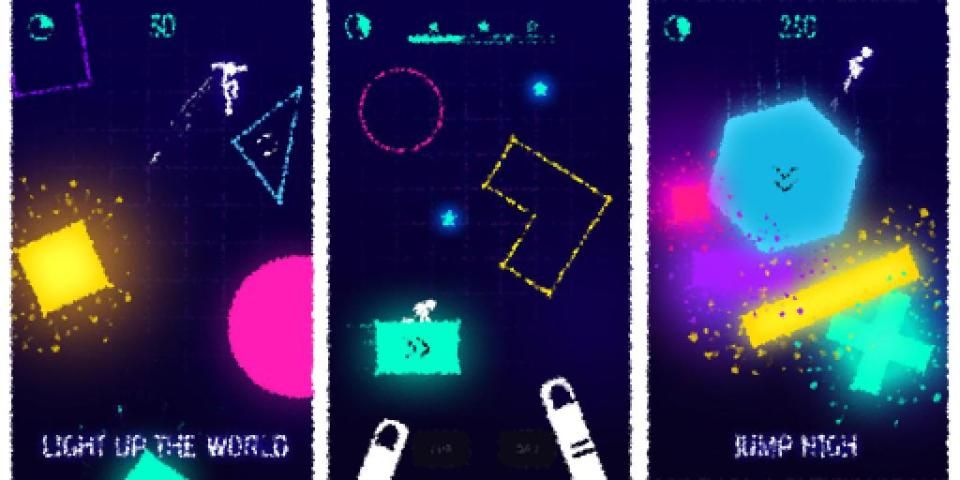 Ruch, flip and slide your stickman body from one neon colors shapes to another to make them glow and Bright.