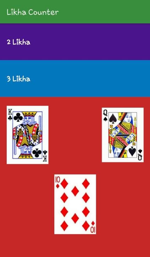 ख) 3 Likha: (प्रति कार्ड 1 अंक), क्लब के राजा के लिए 16 अंक, हुकुम की रानी के लिए 13 अंक और हीरे के 10 के लिए 10 अंक सभी दिल के लिए 13 अंक: हर दौर के स्कोर 52 द्वारा दिए गए है । पहले खिलाड़ी स्कोर तक पहुँचने के लिए 151 खो देता है इसके बाद के संस्करण। दो खिलाड़ियों के 151 से ऊपर स्कोर तक पहुँचने और यह बराबर हैं, तो डेटा प्रविष्टि जारी है जब तक कि एक स्कोर अन्य की तुलना में अधिक है।