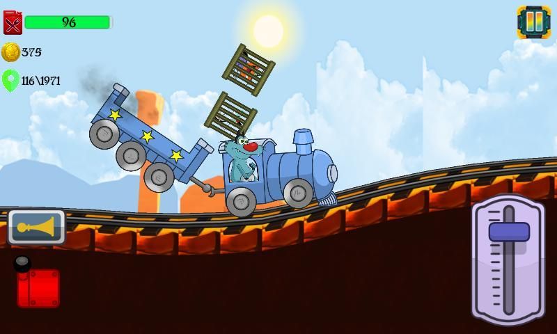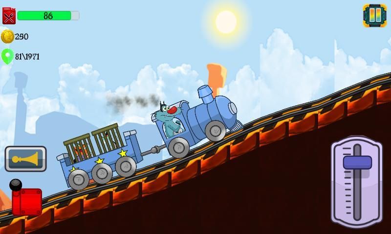 Help oggi to get riding of all the cockroaches from his house and throw them away so they can't go back to oggy house, don't let the train kid fall or cage cockroaches fall because the cockroaches can run away and go back to house, don't forget to refuel the train can continue to go to the hill climb destination.