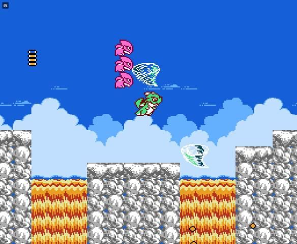 Abilities: You can jump, and press and hold the jump button to hover. You can charge Dragon's fire, by holding down the attack button, until he changes color - There are three colors in total. He has a decent amount of HP, and can duck, like Lickle. Dragon is the only character that does not slip on ice.