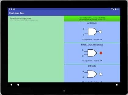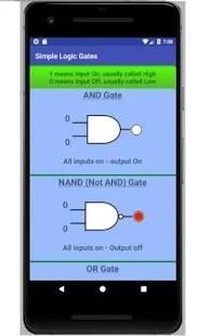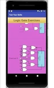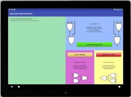 लैंडिंग स्क्रीन सेटिंग्स, गेट परिचय, व्यायाम चयन और तेजी से बार सूची से जोड़ता है। सेटिंग स्पर्श लगता है की एक विकल्प देता है। गेट परिचय आप सीखते हैं और सात लॉजिक गेट कि सभी अभ्यास शामिल के पैटर्न को समझने के लिए अनुमति देता है। आदानों को दिखाने के लिए कैसे उत्पादन बर्ताव बदला जा सकता है। फास्ट टाइम्स सूची प्रत्येक व्यायाम के लिए तीन सबसे तेजी से बार का आयोजन करेगा। व्यायाम चुनाव दस अभ्यास एक पूरा करने के लिए चुना जा सकता है जहाँ से प्रदर्शित करता है। अभ्यास आसान से कठिन तक होती है। प्रत्येक व्यायाम के लिए वांछित परिणाम exercisec स्क्रीन के शीर्ष पर लिखा है। व्यायाम टाइमर जब पहली इनपुट बदल गया है शुरू करने और जब वांछित परिणाम तक पहुँच जाता है बंद हो जाएगा। एक तेजी से समय हासिल की है, तो आप नाम संकेत है कि प्रकट हुई टैप कर सकते हैं। कुंजीपटल पर अपना नाम लिखें और दर्ज करें। आपका नाम और समय फास्ट टाइम्स सूची में लिखा जाएगा।