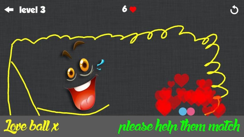 कृपया आप स्क्रीन पर एक निरंतर रेखा खींचते हैं और दो लव बॉल्स गिर जाएंगे और यदि कोई हो, तो टकराएगा।