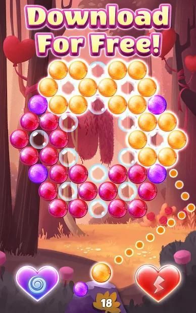 Spend your time playing the most romantic bubble puzzle game. Play now and discover thousands of addicting puzzles and challenges designed to train your brain and to take you to another level of entertainment. Download the most amazing bubbles game, hit and shoot all the colorful balls to clear the board and enjoy a relaxing fun time.