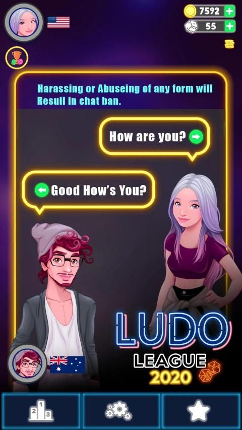 लूडो लीग एक क्लासिक बोर्ड खेल मित्रों और परिवार के सदस्यों के बीच खेले जा सकता है। तुम भी गेम खेलने के दौरान अपने दोस्तों के साथ चैट और विश्व भर में अन्य लोगों के साथ अपनी भावनाओं को व्यक्त कर सकते हैं। तो आप किसका इंतज़ार कर रहे हैं ? नि: शुल्क और रोल लूडो पासा के लिए डाउनलोड लूडो ऑनलाइन मल्टीप्लेयर गेम लूडो टूर्नामेंट पर कब्जा लूडो बोर्ड के केंद्र तक पहुंचने के लिए अपने टोकन ले जाने के लिए। दुनिया के खिलाड़ियों के साथ मुक्त लूडो खेल और उन्हें अपने लूडो साथी बनाते हैं!