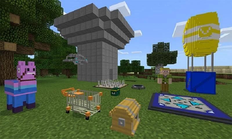 There are plenty weapons to choose from, and you can even ride the Battle Bus or a Shopping Cart. While it’s still very much MCPE, a lot of things have been completed transformed to look more like Fortni1e. So if you’re an avid fan of MCPE and Fortni1e, then this add-on is great for you!