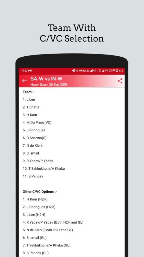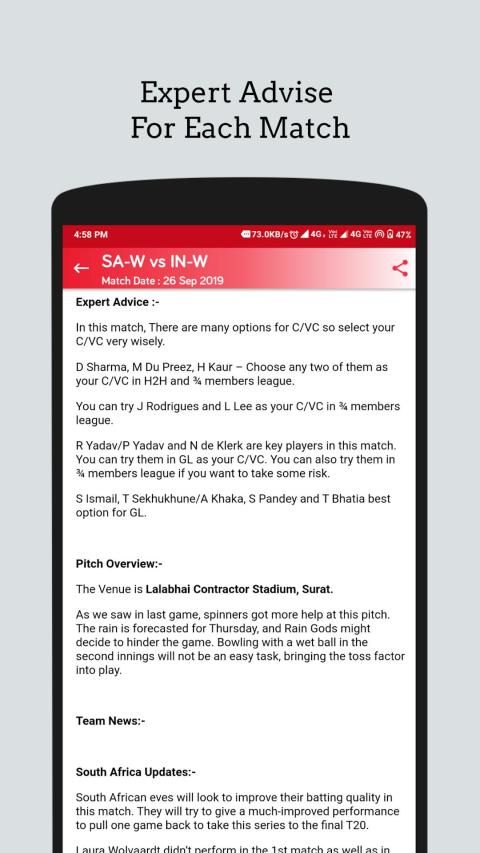 We give you possible 11, playing 11, top 11 players of the matches so its easy for you to use it.