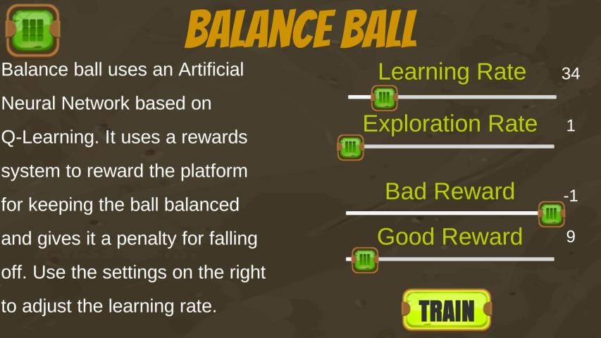 इस एप्लिकेशन के 4 उदाहरण हैं जो उदाहरण गेम खेलने के लिए डीप लर्निंग एआई का उपयोग करते हैं। एआई जानता है कि वह एक आइटम को स्थानांतरित कर सकता है लेकिन यह नहीं जानता कि कितनी या किस दिशा के साथ। इन उदाहरणों में AI को पहले प्रशिक्षित नहीं किया गया है, लेकिन हर बार जब आप एक उदाहरण खोलते हैं तो गतिशील रूप से प्रशिक्षित होते हैं। वे डिफ़ॉल्ट सेटिंग्स के साथ खुद को बहुत जल्दी सिखाते हैं। एआई सीख सकते हैं कितनी तेजी से देखने के लिए सेटिंग्स के साथ खेलते हैं।