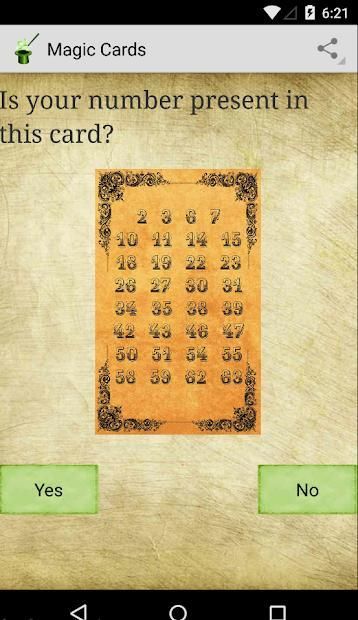 इससे आपको अपने दिमाग को पढ़ने और आप अपने मन में चयनित संख्या बताना होगा कुछ ही क्लिक मैजिक कार्ड के भीतर दिखाया कार्ड से अपने मन में एक नंबर का चयन किया है, जहां जादू कार्ड खेल है।