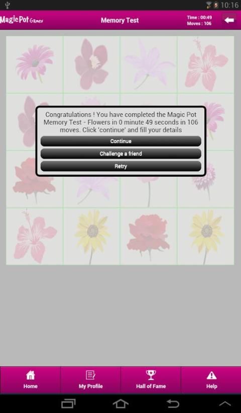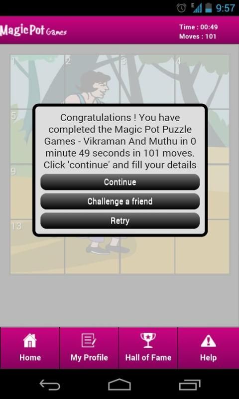 आप अपने प्रोफाइल बनाने के लिए और क्या आप को चुनौती देने के लिए अन्य लोगों को आमंत्रित कर सकते हैं ताकि प्रत्येक खेल के अंत में स्कोर प्रस्तुत कर सकते हैं। सर्वश्रेष्ठ स्कोर हमेशा 'हॉल ऑफ फेम' दीवार 'जादू बर्तन खेलों में अद्यतन रहेगा।