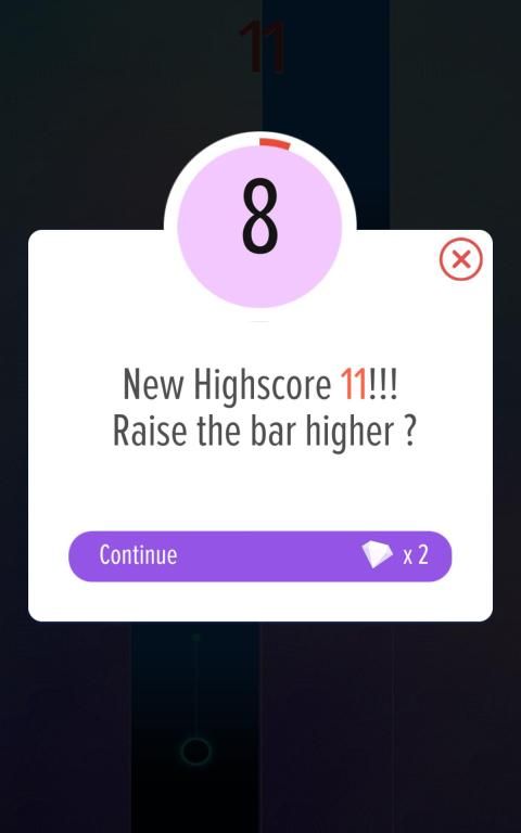 यदि आप एक काले टाइल को याद करते हैं या एक सफेद टाइल पर टैप करते हैं तो गेम बंद हो जाएगा।