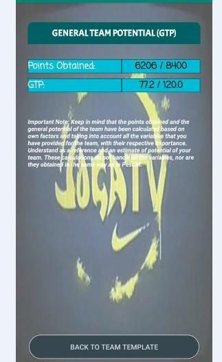 प्रदान की गई जानकारी से, जैसे कि उम्र, विकास, खिलाड़ी का प्रकार, खिलाड़ी सितारे, प्रशिक्षण केंद्र का स्तर, दूसरों के बीच में, आप अपनी टीम के लिए अनुमानित सामान्य टीम क्षमता (GTP) प्राप्त कर सकेंगे।
