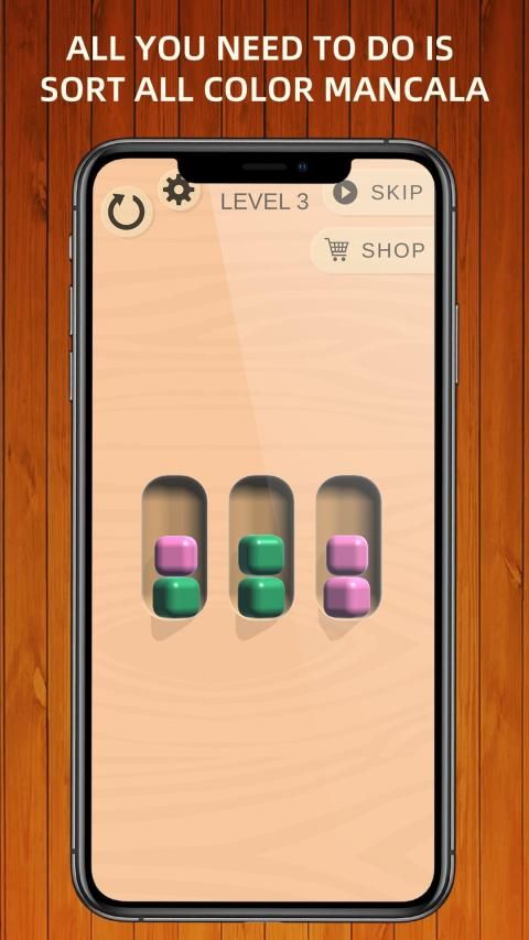 Mancala Color Stack is a casual game that allows your brain to do some exercise. The idea is to sort the balls of the same color and put them in the tube.