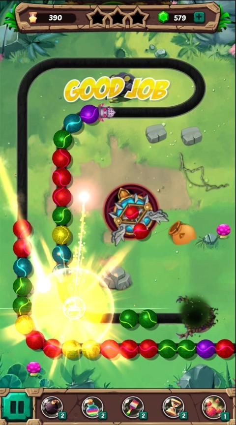 Match 3 marbles or more of the same color and create a magic blast to pop those marbles! Collect and use special magic blast powers-ups like the Thunderbolt or Shockwave and blast marbles away on your magical quest!