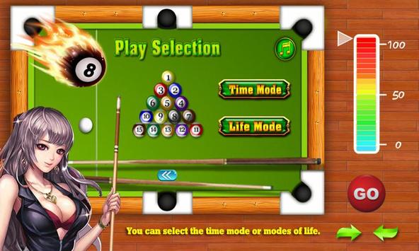 दिशा को समायोजित करने और नीचे हड़ताल करने के अधिकार में बिजली-अप खींचें करने के लिए स्क्रीन को टच करें। टच और किसी भी बिंदु पर पकड़ क्यू गेंद को ले जाने के लिए और मुक्त करने के लिए गेंद पुष्टि करने के लिए दोहन करने के लिए।
