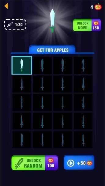 Throw the knives into the logs to break them. Slash the apples and unlock new knives. Each 5th stage is defended by a boss - beat them to get exclusive knives!