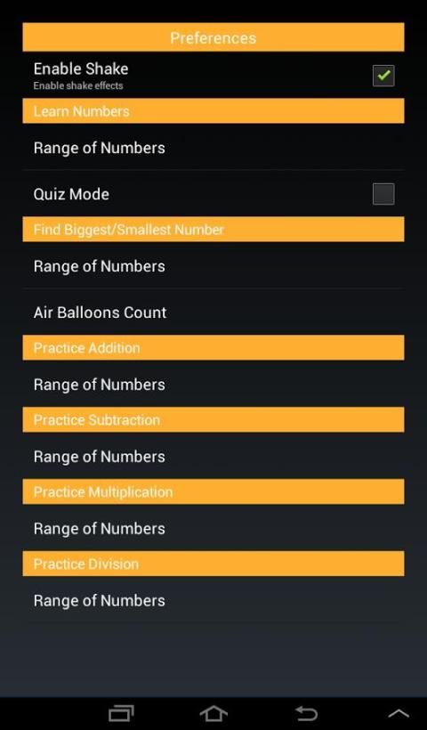 प्राथमिकताएं आप अपने बच्चे की उम्र के आधार पर प्रत्येक गतिविधि की कठिनाई का चयन करने के लिए अनुमति देते हैं.